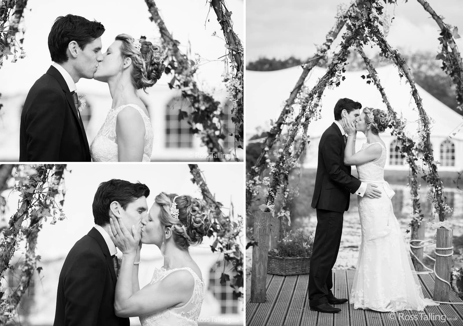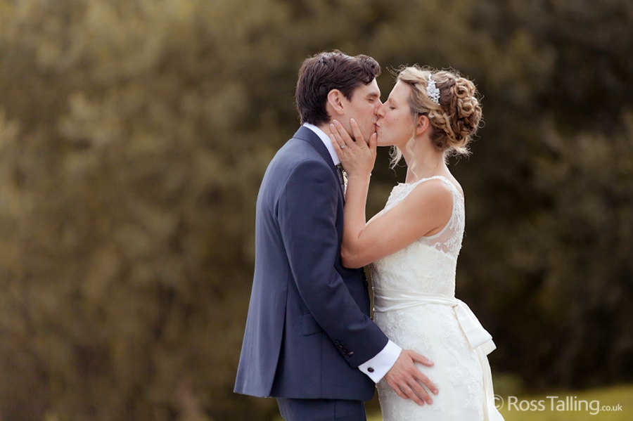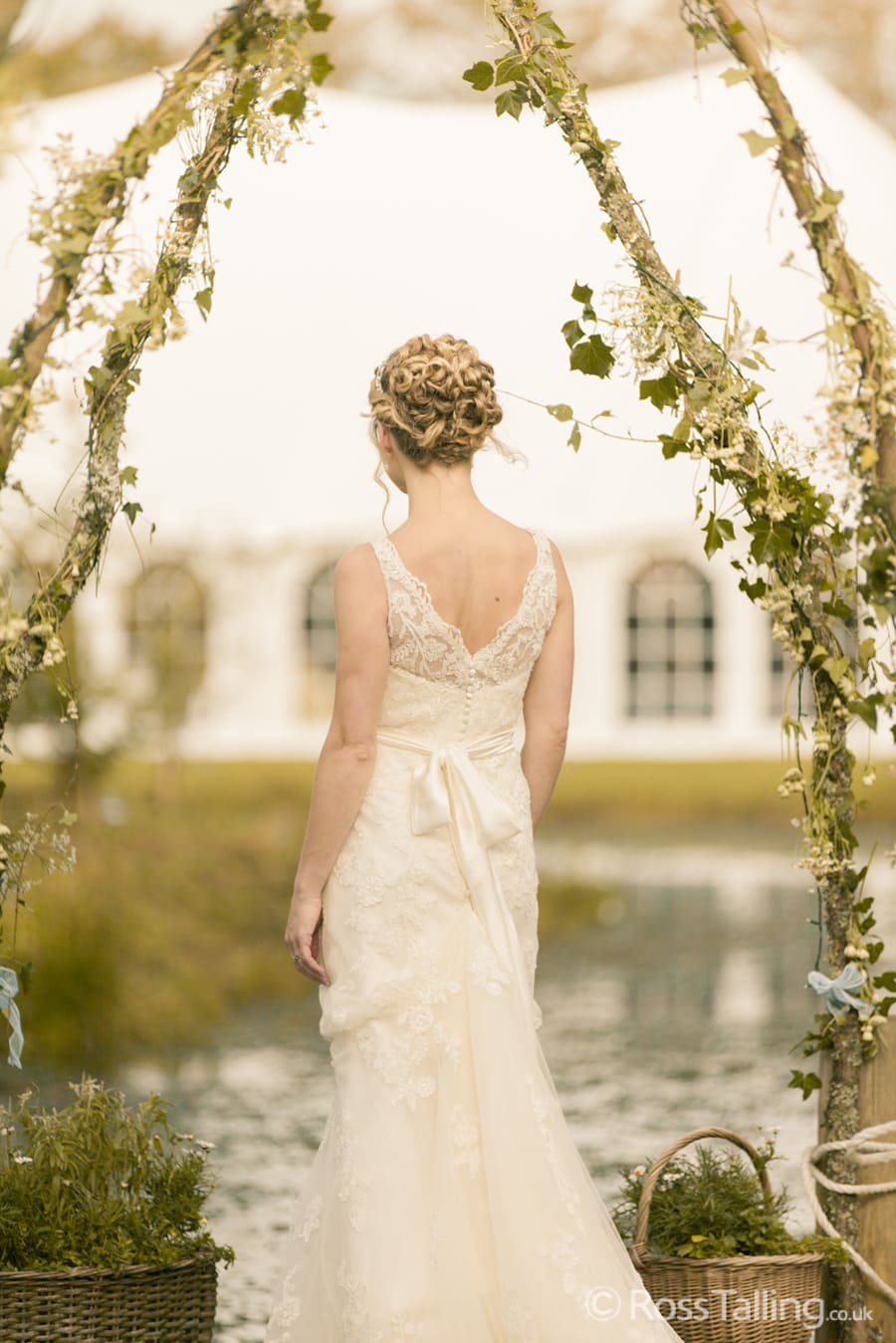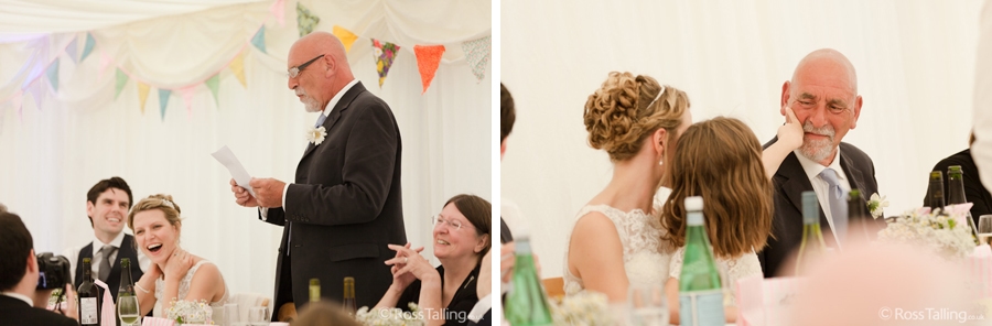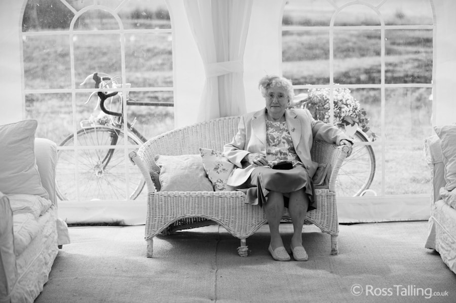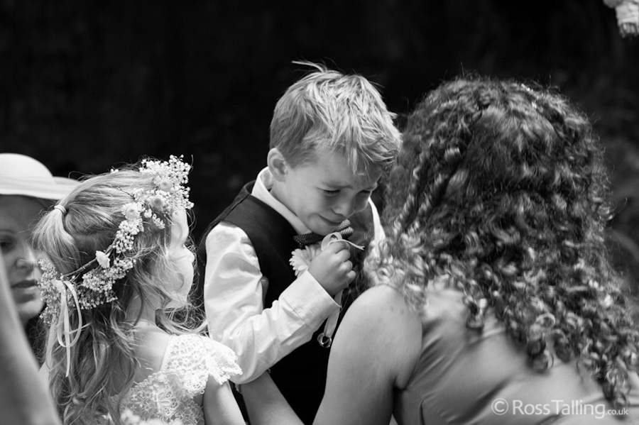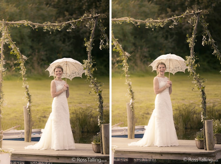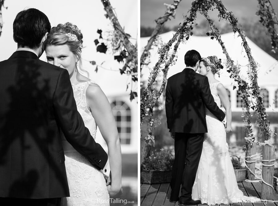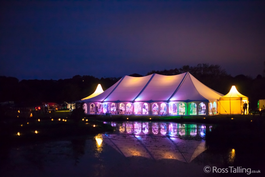 After the ceremony we only had to go around the corner for the reception to Jo’s parent’s very secluded camp site, Pleasant Streams Farm (which is available to hire for weddings) where they had a huge marquee (Coast2Coast Marquees) next to a beautiful lake. The whole place looked wonderful, all the flowers, decorations and the cake where done by Jo’s sister Kristy (Kristy Lou’s Flowers – 01726 76811), she must have been rushed off her feet in the run up to the big day, great job Kristy! Jo and Roger did a few laps riding around the lake on the vintage tandem bike they had borrowed for the day, I cant quite believe Jo managed that in her dress, brilliant! And then after mingling with the guests for a while, it was more exercise, rowing around the lake in a boat, decorated with flowers of course.