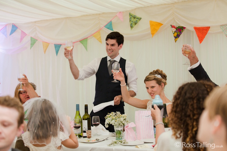 After all that I bet they were hungry, I know I was, so we sat down for roast lamb, the very tasty meal was made by Anne Curtis Catering, it was lovely, thanks. The speeches were really funny, even Jo did one and ‘stole all Roger’s material’ before his turn. Then after a few drinks and some cake, Jo and Roger had their first dance as Mr and Mrs, then the party got started and my job was done, phew, what a long day! It was brilliant though, I really enjoyed it, thanks to Jo and Roger for letting me be part of it, all the best guys!