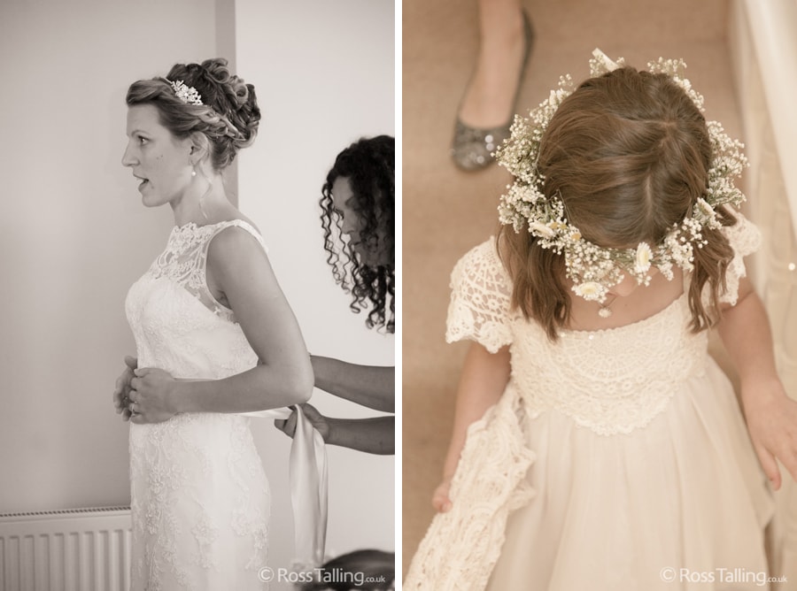 Here are some pictures from Jo and Roger’s wedding I shot a few weeks ago, and what an amazing day it was! I started out at Summerleaze in St Stephen where Jo was getting ready along with the bridesmaids and flower girls. Jo was showing no sign of nerves, in fact she was so relaxed that she was sat down eating a bacon sandwich at 12.25, only 20 minutes before the car was due to arrive and she still didn’t have her dress on! When she did eventually finish getting ready (just in time!), she looked absolutely beautiful, the dress was genuinely one of the most elegant I’ve ever seen.